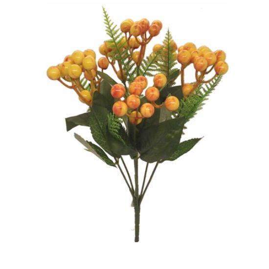31cm BERRY BUSH WITH FERN ORANGE